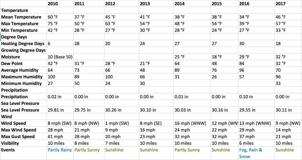 We have had 6 sunny days and 2 rainy / snowy days the last 8 years.